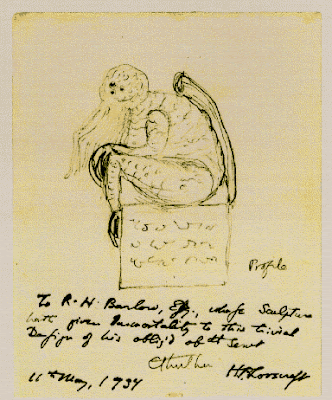 Over at Tor.com, John Coulthart has written a nice piece on Lovecraft and his favorite artists. It  even brings up what might be the very first sketch of Cthulhu by Lovecraft himself (see below).